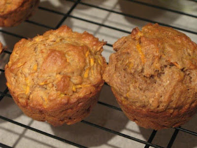 OH...if the first batch were yummy, the second batch were heaven! The only other modification I'd make would be to grate the carrots by hand - I think they'd be finer and juicier and better, but these were awesome. They passed the test of my two year old, who asked for more muffins ALL evening, my eight year old nephew, my brother-in-law and my sister-in-law (who had a batch #1 muffin and still thought they were super!). Oh, and of course it passed the Alex test...which can be tricky when the food is "snack" food trying to be healthier!
