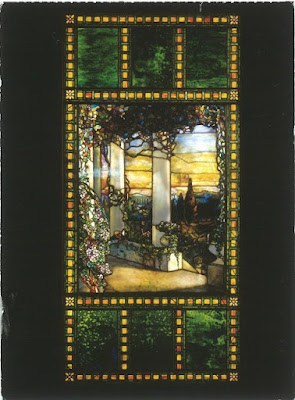 Description: Tiffany Studios. Window; "Landscape with a Greek Temple," c. 1900